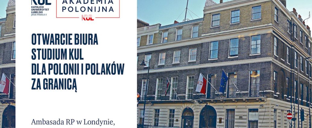 Biuro dla Polonii i Polaków ze Zjednoczonego Królestwa Wielkiej Brytanii i Irlandii Północnej, wchodzące w skład Akademii Polonijnej KUL, zostało 11 czerwca uroczyście otwarte w Ambasadzie RP w Londynie. Główne zadania nowej jednostki – Biura Studium KUL dla Polonii i Polaków za granicą – to m.in. organizacja zajęć stacjonarnych, szkoleń i studiów podyplomowych, konferencji, sympozjów, debat tematycznych, zajęć z języka polskiego oraz kursów podnoszących kwalifikacje, skierowanych m.in. do nauczycieli szkół polskich.