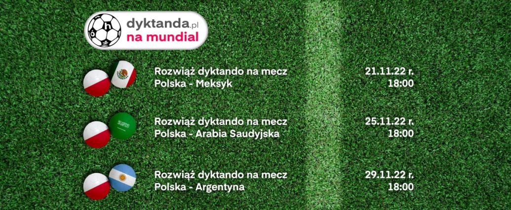 Całość będzie składała się z dwóch etapów. Najpierw, w fazie grupowej, każdy fan piłki nożnej będzie mógł podzielić się swoimi przewidywaniami lub marzeniami – czyli przygotować dyktando opowiadające o dowolnym meczu polskiej reprezentacji na tegorocznym mundialu. Swoje prace można przesyłać tutaj: https://dyktanda.pl/konkursy-wypracowan/napisz-dyktando-na-mistrzostwa-swiata