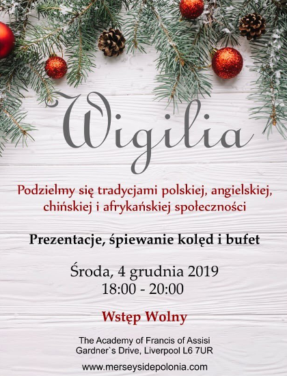 Merseyside Polonia starts the Festive Season with Community Christmas Event. It’s FREE and open for ALL. Invite your family and friends. Merseyside Polonia rozpoczyna sezon świąteczny od wspólnego Eventu Bożonarodzoniowego. Będzie to impreza DARMOWA i otwarta dla WSZYSTKICH. Zaproście więc rodzinę i przyjaciół. Community Christmas Event Wigilia Come and discoverCzytaj Dalej
