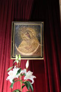 „Jak wynika z badań, ten obraz Matki Bożej Ostrobramskiej jest tak stary jak nasz kościół św. Mikołaja. Gdy w 1991 roku wierni przez kilka miesięcy modlili się na schodach przed zamkniętymi drzwiami kościoła, ks. Jan Krapan, ówczesny proboszcz parafii św. Aleksandra, przyszedł z obrazem Matki Bożej Ostrobramskiej i podarował go parafii” – opowiada ks. Wyszkowski, proboszcz parafii św. Mikołaja w Kijowie. Przypomina, że do zamknięcia kościoła w 1938 roku jeden z jego bocznych ołtarzy poświęcony był Matce Boskiej Ostrobramskiej. „Prawdopodobnie jest to oryginalny obraz pochodzący z naszego kościoła, który został ukryty przed bolszewicką grabieżą, a później przekazany sąsiedniej parafii” – dodaje proboszcz parafii św. Mikołaja.